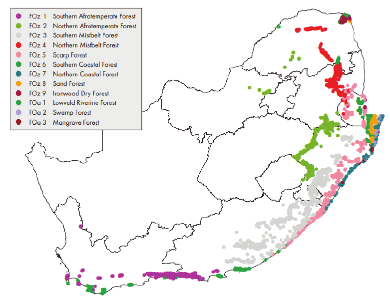 South Africa’s Forest biome is the smallest in the country, covering less than 0.56% of the surface area. Due to its fragmented state and small extent of occurrence, it is also one of the most vulnerable biomes.