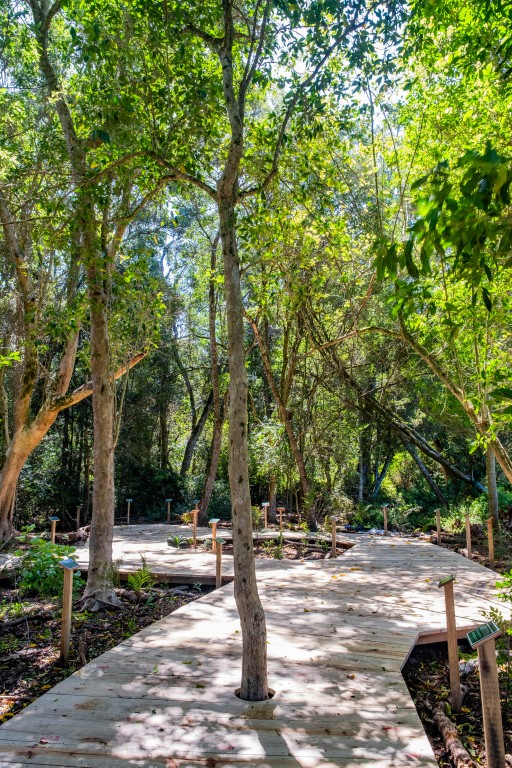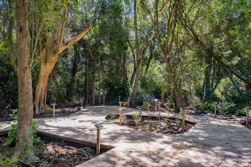 Visitors can explore the Arboretum on a wheelchair-friendly wooden walkway that provides safe access while allowing the forest floor soil processes to occur without disturbance.