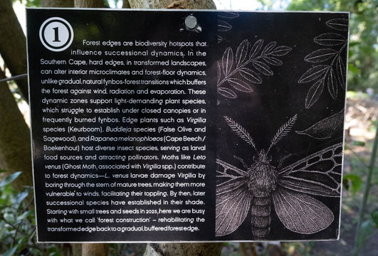 Here, we present the near full suite of Afromontane tree species occurring in the southern Cape forests, with information boards for each tree.
