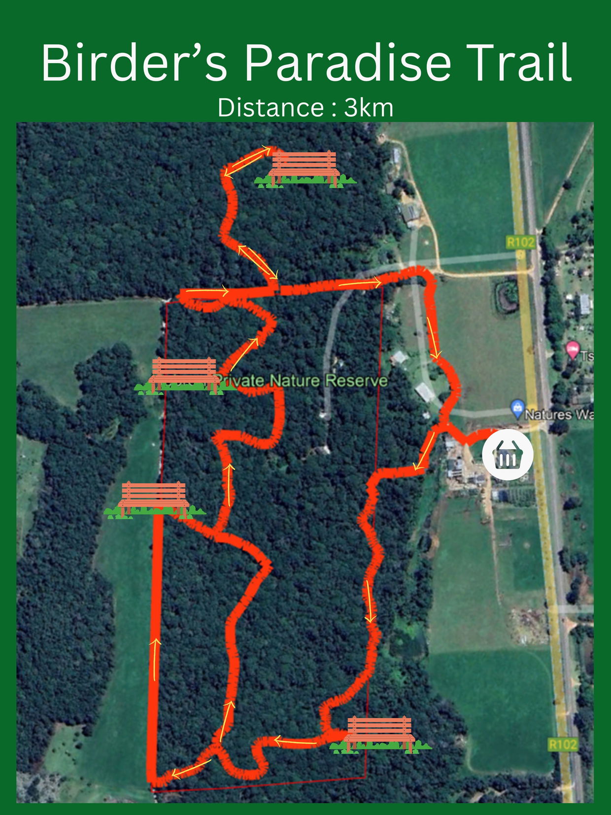Our longest trail is the Birder’s Paradise Trail and it is 3km in length. Along the trail, you’ll be sure to